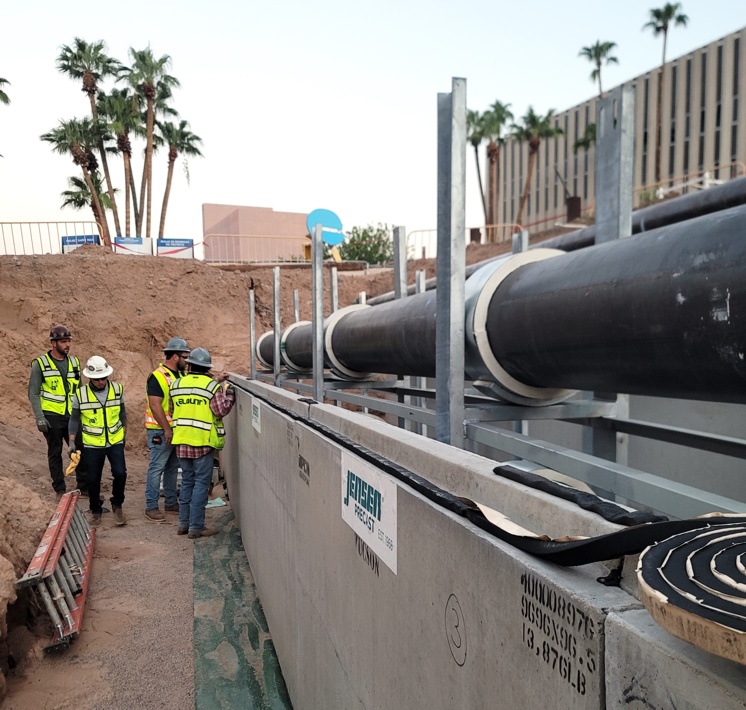 “Having a tunnel to encase the utilities provides easy access if there are issues down the road,” explains John Suor, Jensen Outside Sales Representative and Estimator, who oversaw the ASU Utility Tunnel project for the company. “The customer could have easily backfilled the lines, but if there’s an issue in the future, it would require major demolition of the landscape to get to the utilities. Since the utilities are very long, it could be difficult to locate any issues. You may end up digging up the entire landscape trying to find any issues because the landscape is already wet. The tunnel system eliminates that potential problem.”