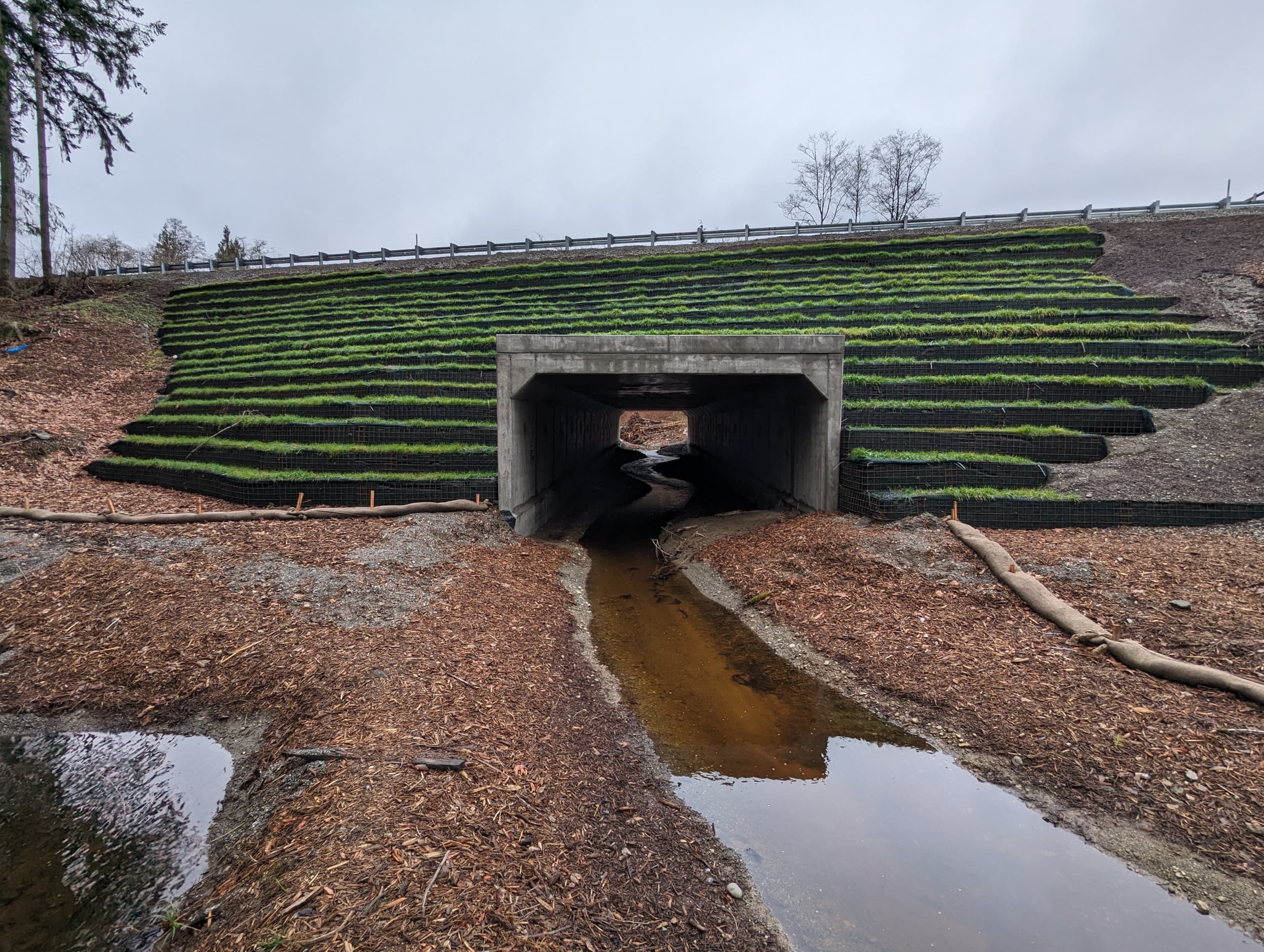 The natural fill material on either side of the stream serves as an invitation for wildlife to pass through rather than walking across the highway above it. This outcome will create safer conditions for both motorists and animals for years to come, since the new structures are built to last at least 75 years.