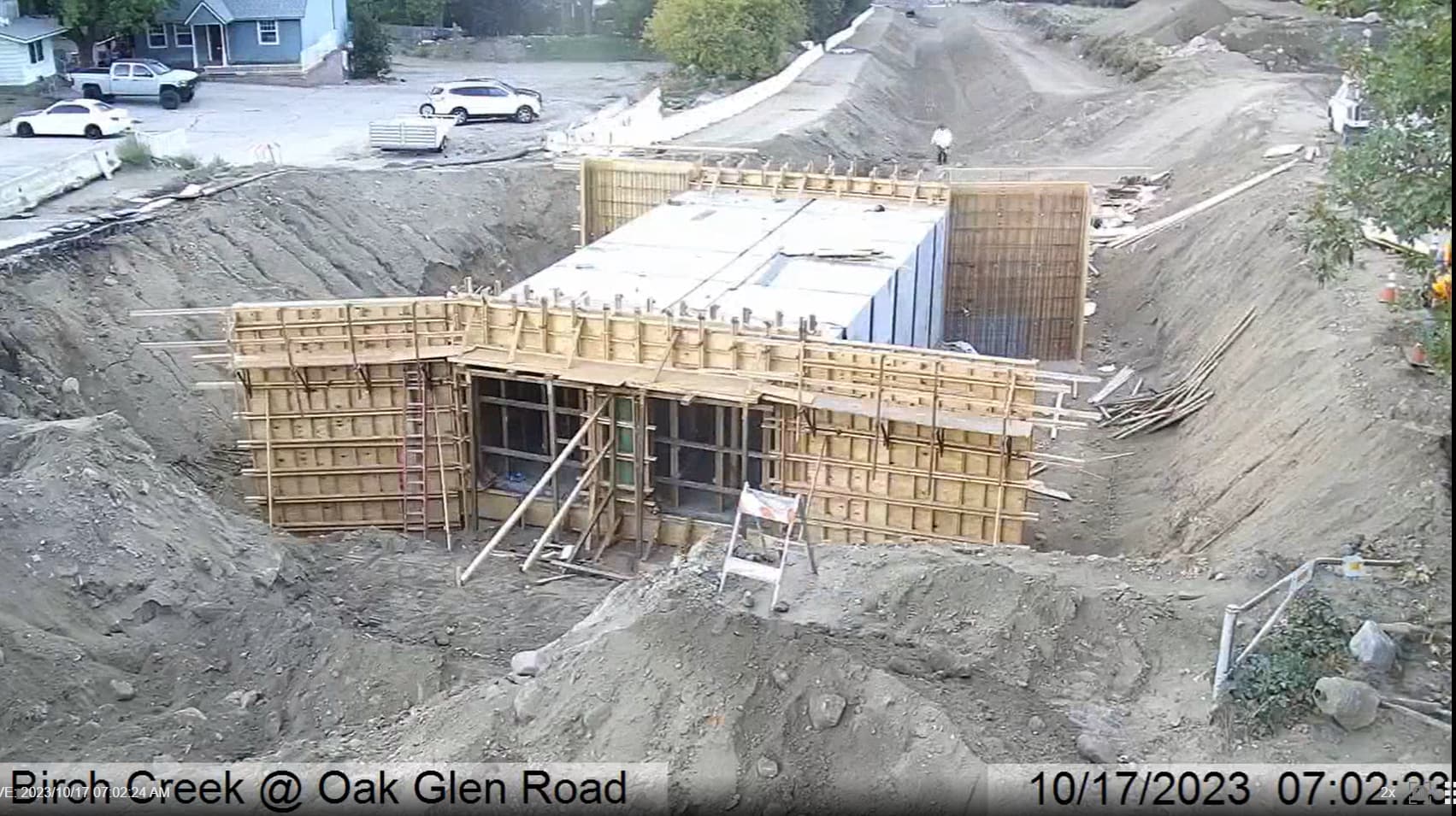 “When the old culvert was built in the 1930s, it was just a little too small to handle the Q100 flow of approximately 3,000 cubic feet per second,” Drake explains. “So I needed 200 square feet of area to pass that amount of flow, and that was two 10’W x 10’H culvert structures.”