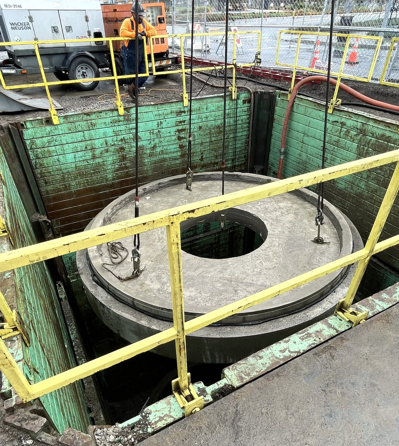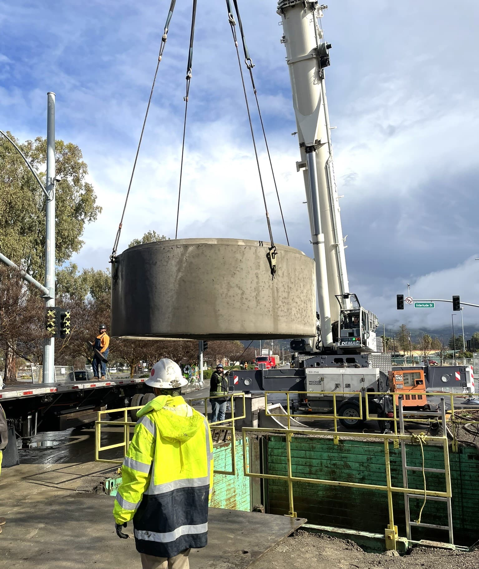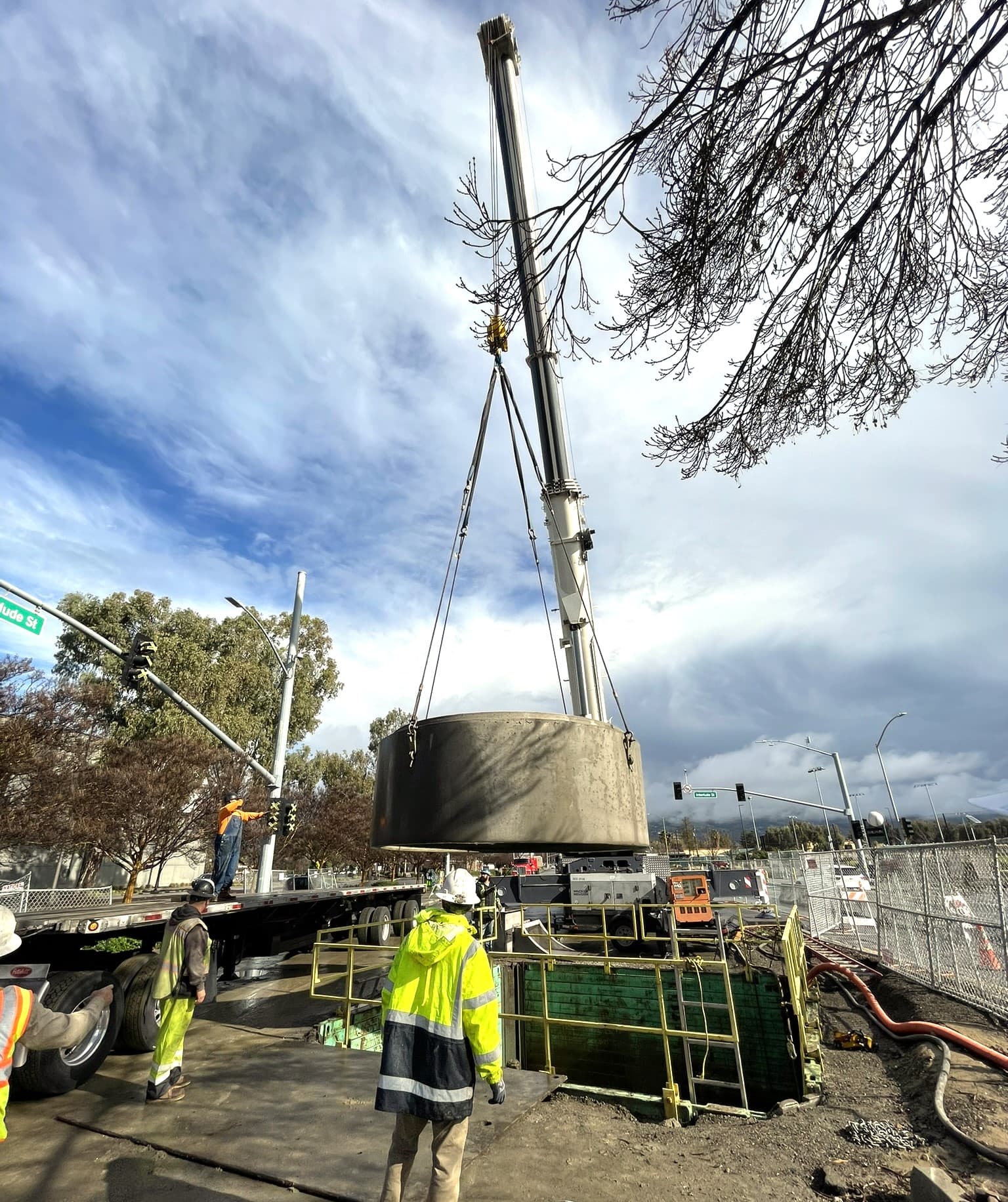 The JDS unit utilizes two 12’ diameter precast concrete manholes, with a flow splitting vault in between the two structures. The unit is part of San Jose’s Large Trash Capture Device Installation Phase XII, an initiative to install trash capture devices on the city’s storm drain system. The goal is to provide 100 percent trash load reduction by July 2025.