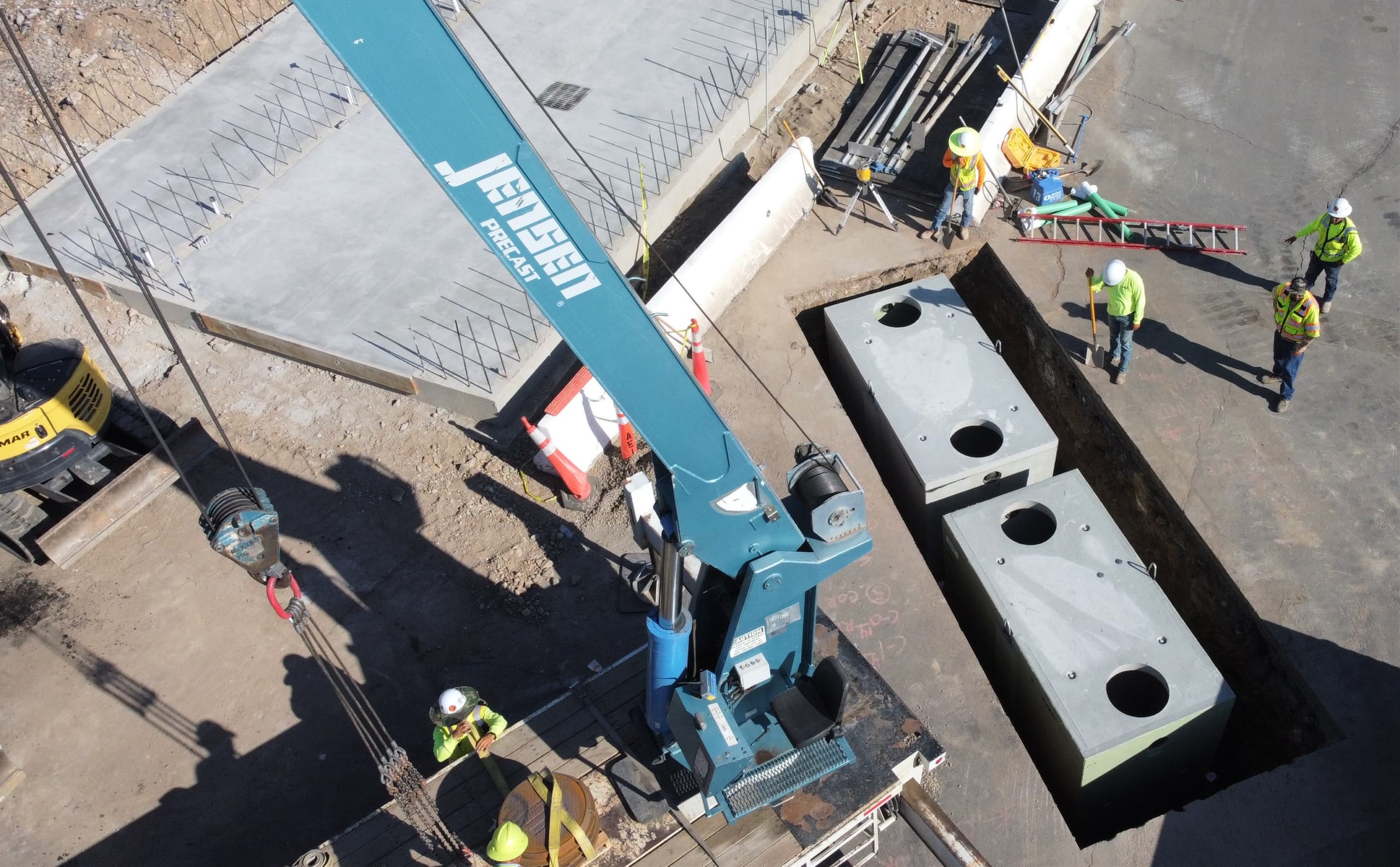 “I don’t know of any new places going up like this that don’t get these precast interceptors,” Cobun says. “They’re good for the sewer system. We actually installed a Jensen interceptor for grease in the restaurant too.”