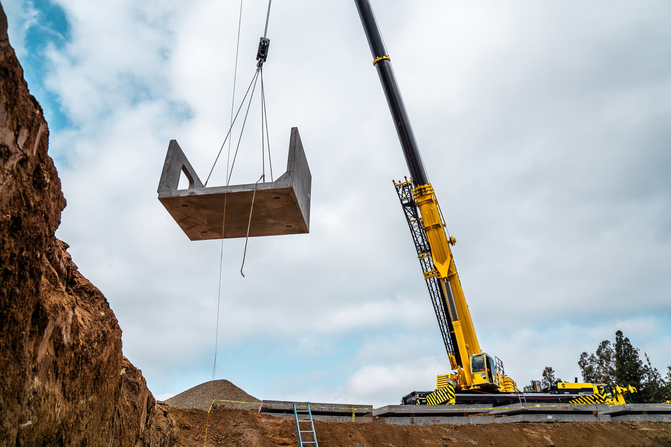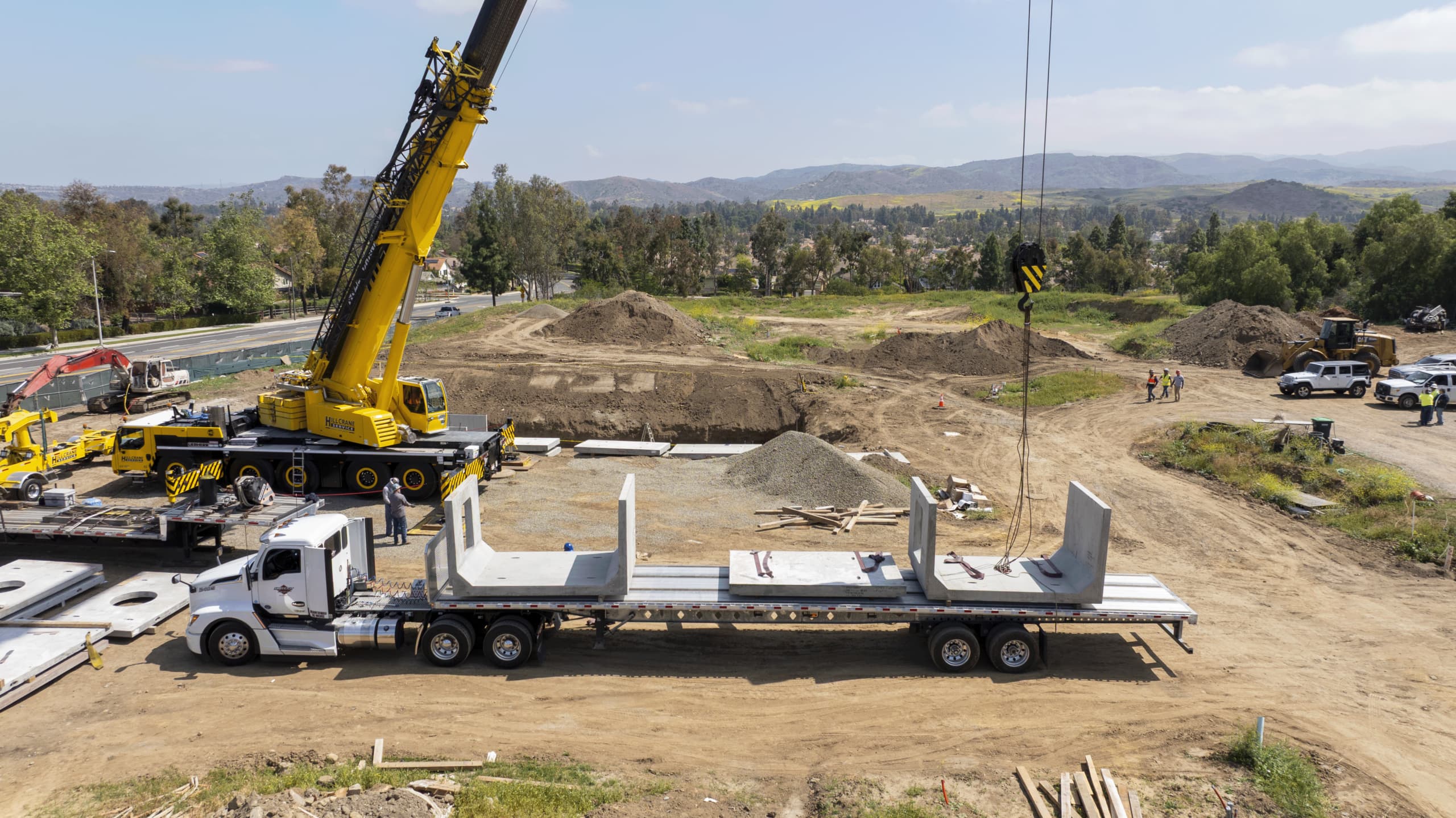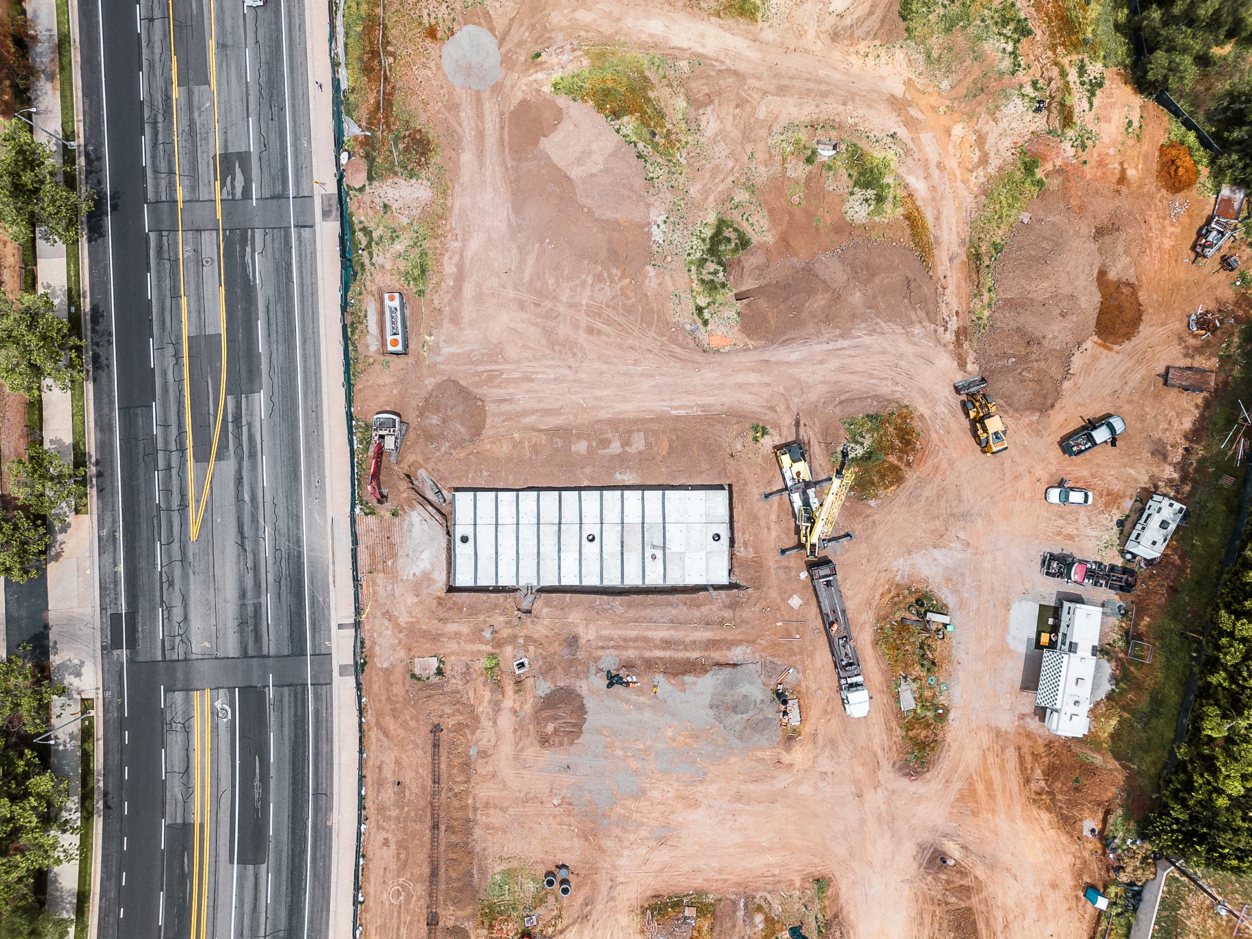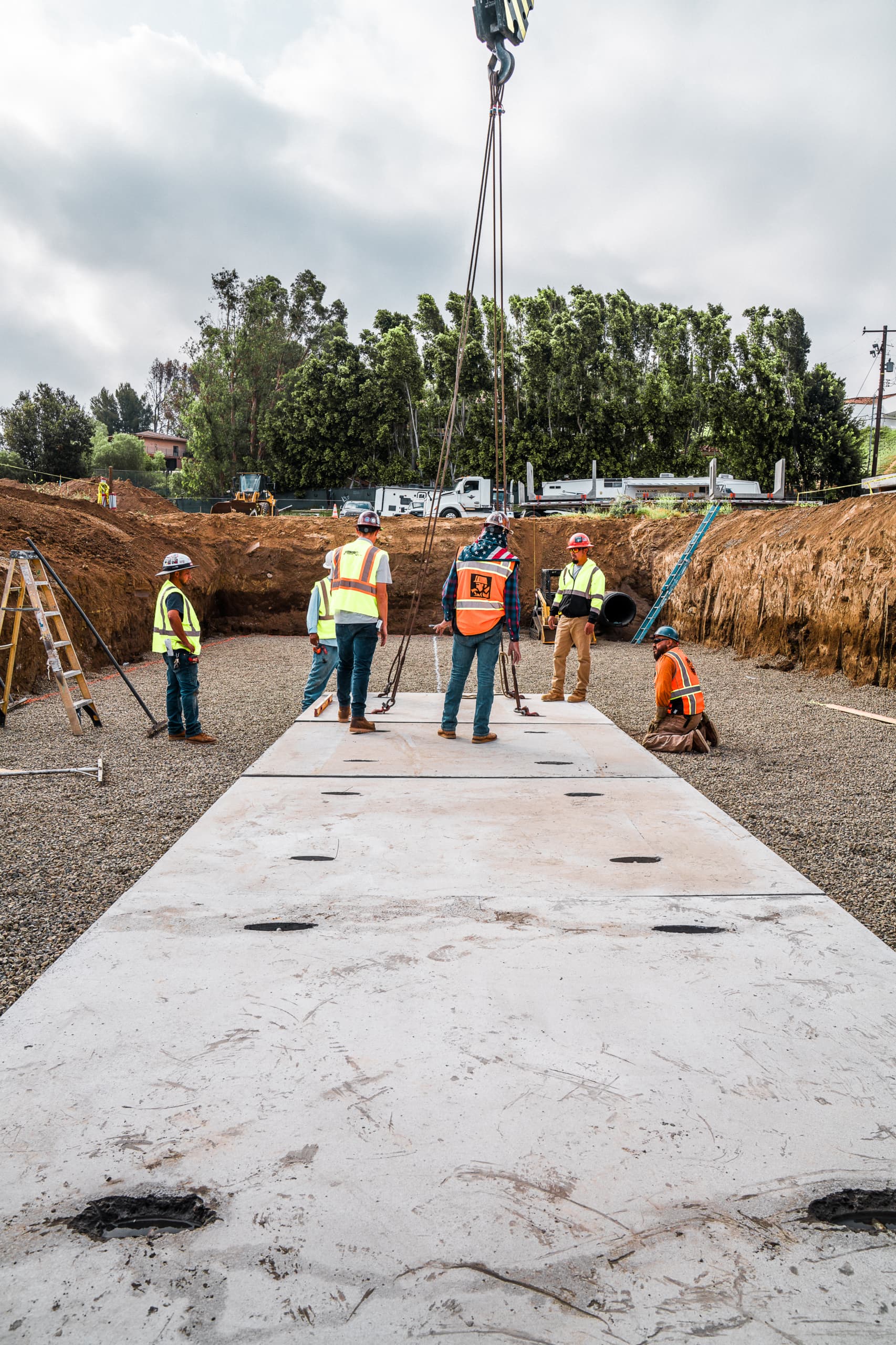The single vault StormVault™ detention system Jensen delivered was 11’ W x 6’ H and spanned nearly 100 feet. During the installation, two Jensen field service managers were onsite to help guide the contractor, Espinoza Engineering, on best practices for positioning and setting the precast components.