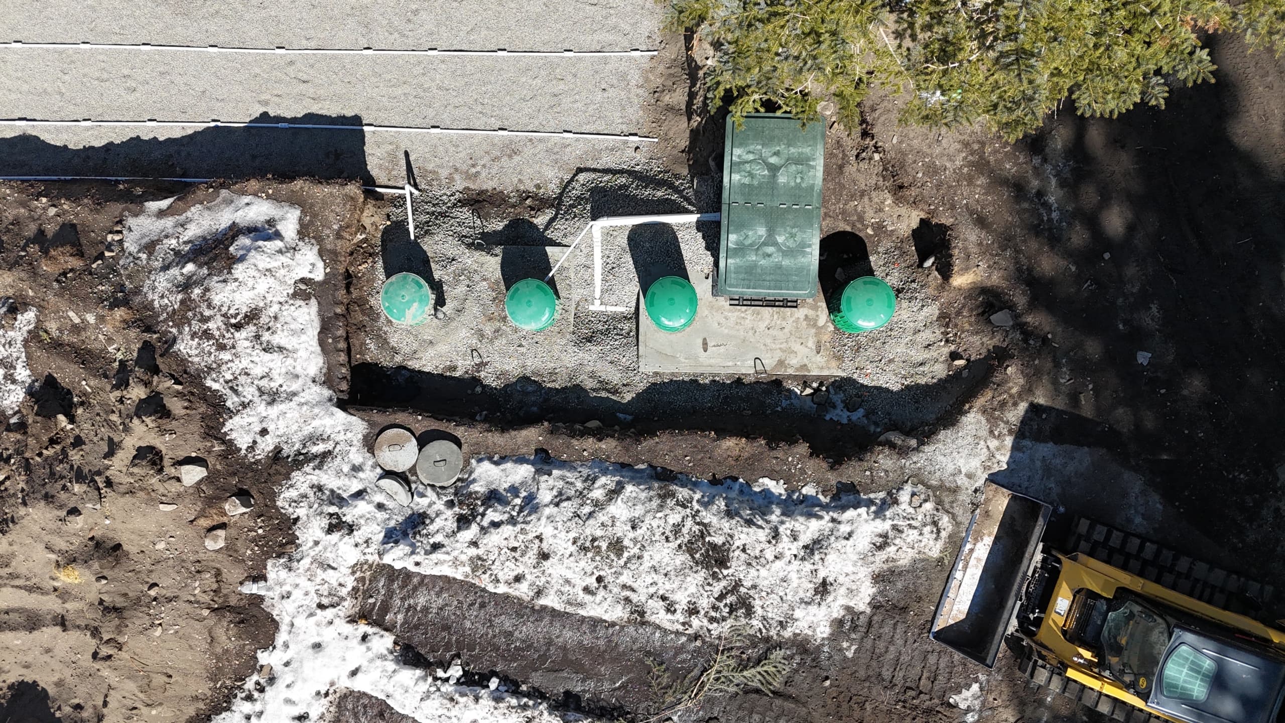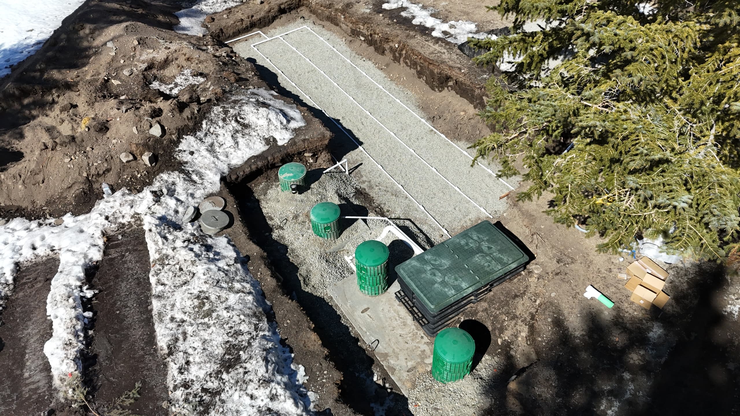 Jensen Infrastructure provided a comprehensive advanced treatment system tailored to meet the homeowner’s needs and ensure regulatory compliance, including two precast concrete tanks, an EZ Treat packed bed media filter, plus pumps and discharge assembly for the pressure distribution field.