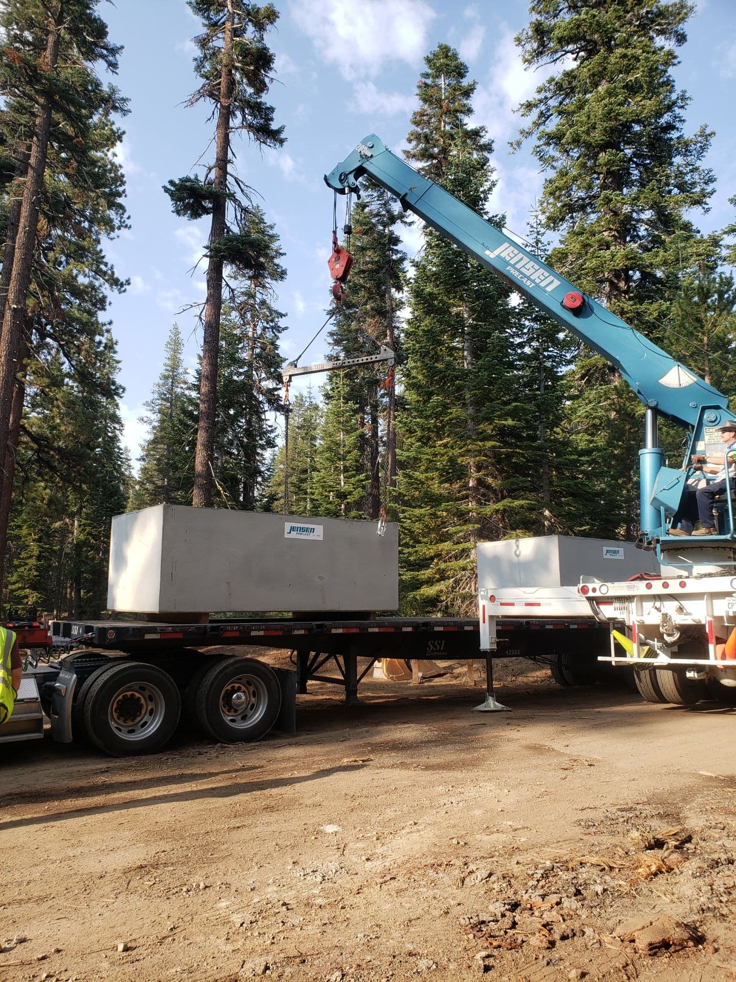 Jensen entered the picture in early 2020 as the supplier of 14 dry vault pit-style restroom buildings, with 10 heading to Silver Lake and four to Caples Lake. Jensen also produced the underground vaults installed below each of the structures. That’s an impressive amount of precast in its own right, but what makes this project unique is the intricate logistics that went into making the project a success.