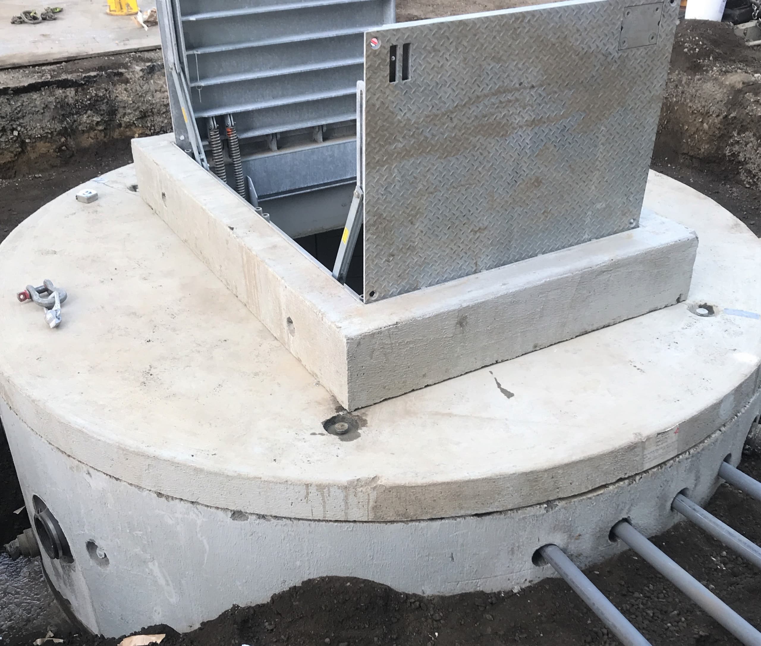 “We furnished a complete package, including an A-LOK lined concrete well for H2S corrosion protection, FM-rated HOMA ASC submersible pumps with 4” spherical solids clearance, and additional cutting system to address long fibrous material,” says Nick Pace, Jensen Pump Technician. “We also included a Wager passive carbon media odor control valve to disguise the system from travelers and a separate precast concrete valve vault with a Jensen access hatch for ease of maintenance.”